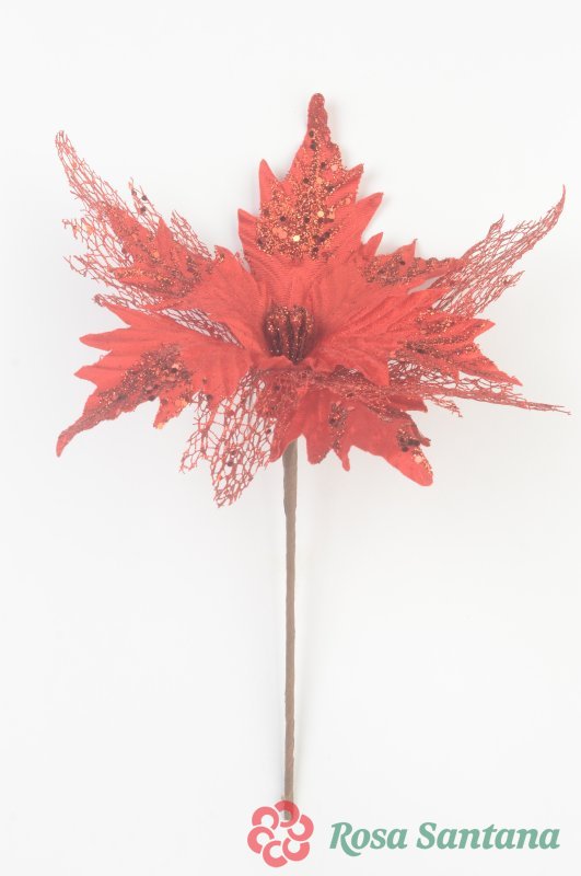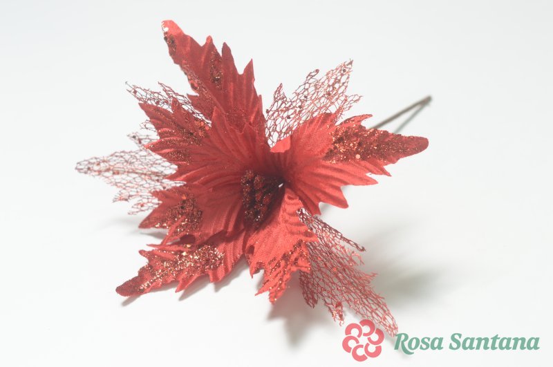Голова пуансеттии с ножкой (d-16 cm) для ветки, венка