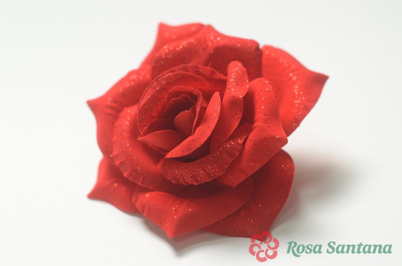 Голова розы бархатная с перламутром для ветки, венка красный